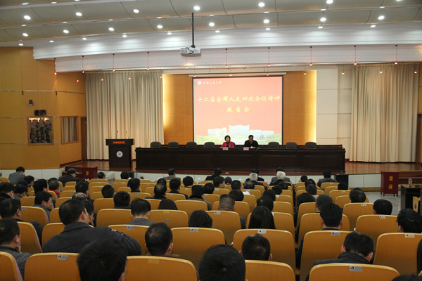 (图文)必赢召开传达学习十二届全国人大四次会议精神报告会