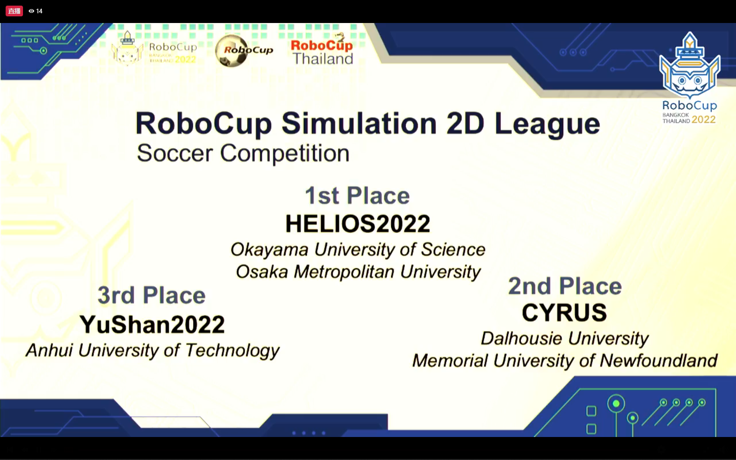 必赢学子在2022RoboCup机器人世界杯比赛中获仿真2D项目季军