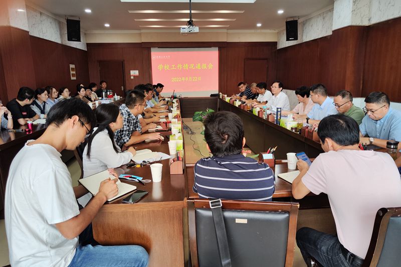 9月22日下午,学校召开2022年上半年及暑期学校工作情况通报会,校长魏先文出席会议并作学校工作情况通报。会议由校工会主席、教代会执委会副主任姚敏主持。魏先文从疫情防控、全面从严治党、思政工作、教育教学、招生录取、大学生就业和创新创业、学科建设、科技创新水平和支撑...
