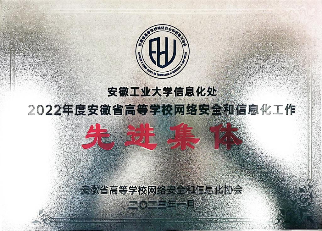 必赢荣获2022年度安徽省高等学校网络安全和信息化工作先进集体