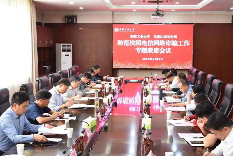 为进一步加强校园反诈防骗宣传教育力度,促进“无诈学校”创建,4月18日下午,学校与马鞍山市公安局在警校共建机制下,召开防范校园电信网络诈骗工作专题联席会议。校党委副书记祖明,马鞍山市公安局党委委员、副局长汪俊生出席会议。党委宣传部、学生工作部、研究生工作部、安...