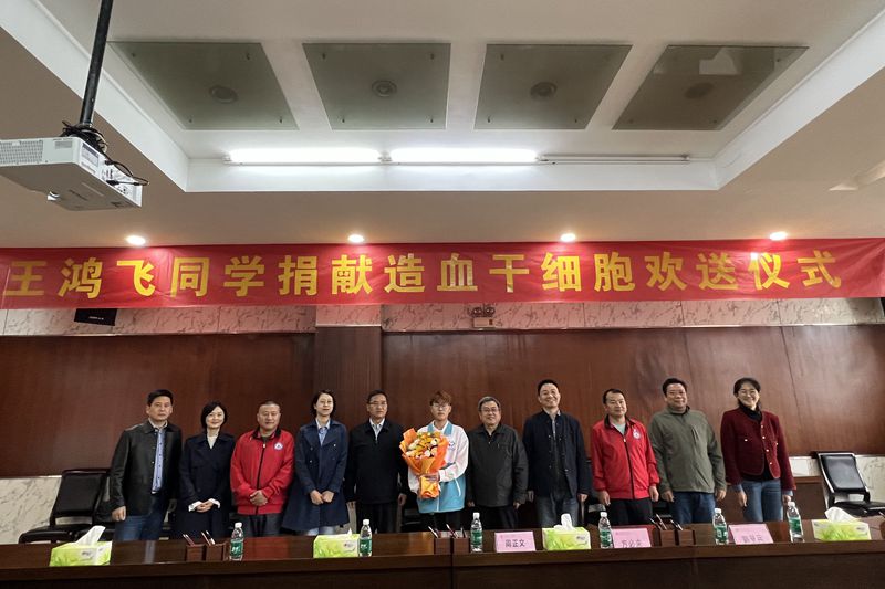 必赢为造血干细胞捐献志愿者王鸿飞同学举行欢送仪式