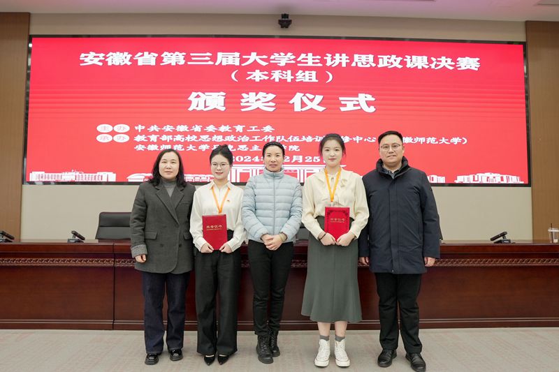 12月25日,由中共安徽省委教育工委主办,教育部高校思想政治工作队伍培训研修中心(安徽师范大学)、安徽师范大学马克思主义学院承办的安徽省第三届大学生讲思政课决赛在芜湖举行。经过激烈的现场角逐,商学院麻青青同学团队荣获特等奖,马克思主义学院王雨晴同学团队荣获二等...