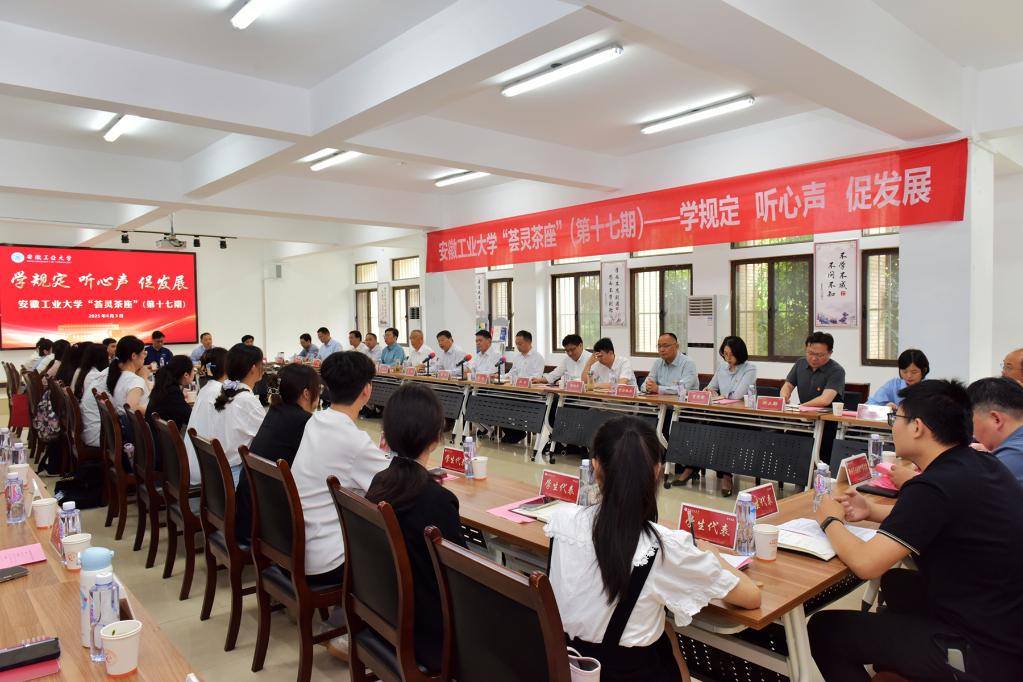 6月3日上午,由学生工作部、微电子与数据科学学院承办的第十七期“荟灵茶座”在秀山校区“一站式”学生社区举行。校领导陆林、曾杰、王俊、郑啸、闵凡飞、郑利平、张世宏出席,校党委常委,相关部门单位负责人、辅导员代表、学生代表参加。活动由校党委副书记王俊主持。本次活...