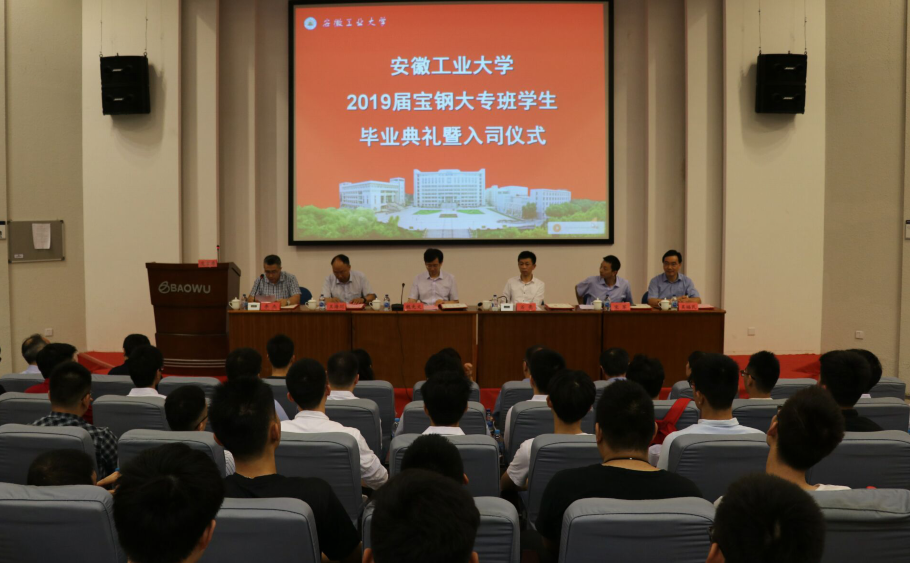 7月16日上午,437bwin必赢国际官网2019届宝钢大专班学生毕业典礼暨入司仪式在宝武人才开发院学术报告厅举行。校长魏先文,宝山钢铁股份有限公司人力资源部(党委组织部)副部长石亮,校教务处、冶金工程学院等相关负责人,部分教师代表及2019届全体毕业生参加仪式。