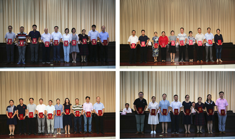 会上,水恒福宣读了《关于表彰全国模范职工之家、安徽省模范教师等获奖集体和个人的决定》,对全国模范职工之家、安徽省模范教师和安徽省优秀教师、安徽省2018年度高校辅导员年度人物 、2018年度高校优秀辅导员、安徽省教学名师、教坛新秀、安徽省向上向善好青年、安徽省社会科学普及工作先进个人、省部级科研奖、安徽省第四届青年教师讲课比赛、宝钢教育奖优秀教师奖及校内提名奖、合肥校友会师德教席奖、马鞍山市三八红旗手、马鞍山市巾帼建功标兵、校“三全育人”先进集体和先进个人、校教学优秀奖、校级教学名师、校级教坛新秀、校级优秀教学管理集体、校十佳班主任、从事教育教学工作满30年人员等进行了通报表彰。校领导向受表彰的先进集体代表和先进个人颁发了荣誉证书。