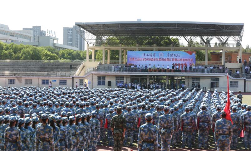 刘新跃在讲话中首先向承担此次军训任务的武警马鞍山市支队官兵表示感谢,向在军训中受到表彰的先进单位和先进个人表示祝贺。他指出,军训总结大会是对同学们“大学第一课”的总结,更是激励大家在新的起点上,铭记历史,重新出发,再创辉煌。他深情寄语:厚植家国情怀、常怀感恩之心、练就过硬本领。要求2019级新同学传承发扬好“军训”精神,在新的人生道路上迈开正步,朝着远大目标勇敢前进,奋力走好新时代大学生新的“长征路”,努力交出让父母放心、让时代满意、让社会赞誉的属于安工大学子的优秀答卷。