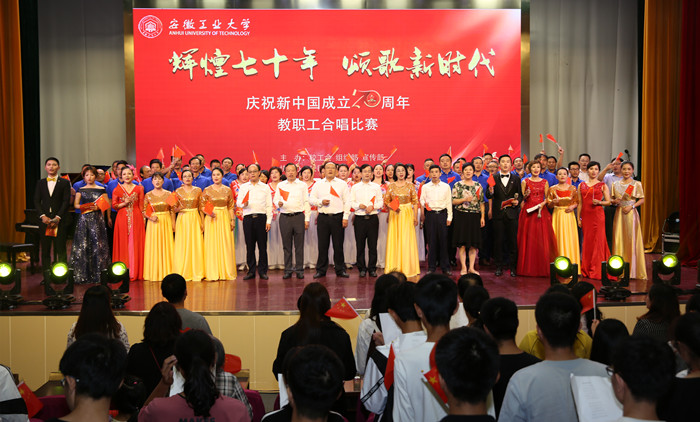 9月26日晚,秀山校区大学生活动中心现场歌声飞扬,曲声激荡。“辉煌七十年,颂歌新时代”庆祝新中国成立70周年教职工合唱比赛在这里精彩上演。本次比赛由校工会、党委组织部和党委宣传部联合主办,校团委协办,来自全校各基层分工会组成的21支合唱队1000多名教职员工齐声歌唱,祝福伟大的祖国。