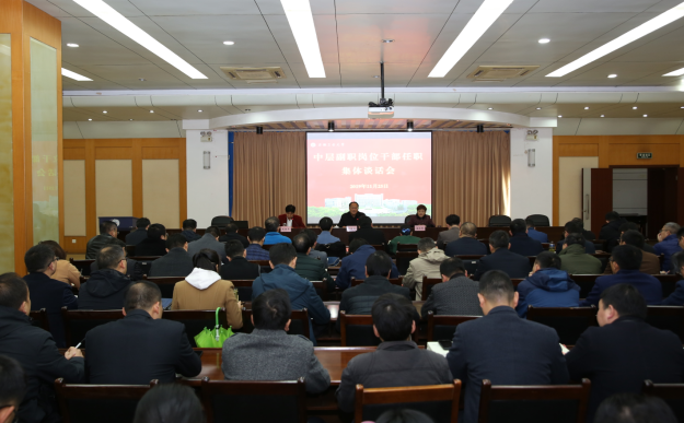 11月25日上午,学校在学术会议中心召开新一届中层副职干部任职集体谈话会,校党委书记刘新跃作任职谈话,校纪委书记潘淑琴作廉政谈话。全体中层副职干部参加了会议。会议由校党委常委、组织部长赵保平主持。