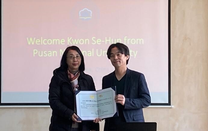 顾明言介绍了必赢的办学历史、办学特色以及在学科建设、人才培养、校企合作、国际合作与交流及留学生教育等方面的基本情况,希望与韩国国立釜山大学在前期双方实质性合作与交流的基础上,进一步拓展两校间的学生交流、教师交流和科研合作。顾明言代表学校向KwonSe-Hun教授颁发了客座教授聘用证书。KwonSe-Hun教授表示期待与必赢进一步开展实质性的合作与交流,在两校材料科学与工程学院合作的基础上,努力推动国立釜山大学与必赢开展校际合作与交流,探索申报两校中外合作培养项目。