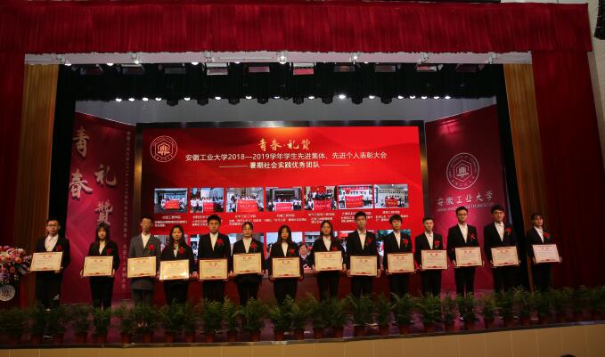 祖明宣读了学校2018-2019学年学生表彰决定。校领导为获得暑期社会实践优秀团队、校“十佳班级”、校“三好学生标兵”、宝钢优秀学生奖学金、国家励志奖学金、国家奖学金、第十四届大学生职业规划设计大赛暨创业大赛省赛金奖、2019年“挑战杯”大学生课外科技作品大赛国家级二等奖(省级特等奖)、RoboCup2019世界杯仿真2D机器人足球赛第四名、2019年国际遗传工程机器设计(iGEM)世界总决赛铜奖等十大类奖项的先进集体、先进个人代表颁发奖牌、证书。