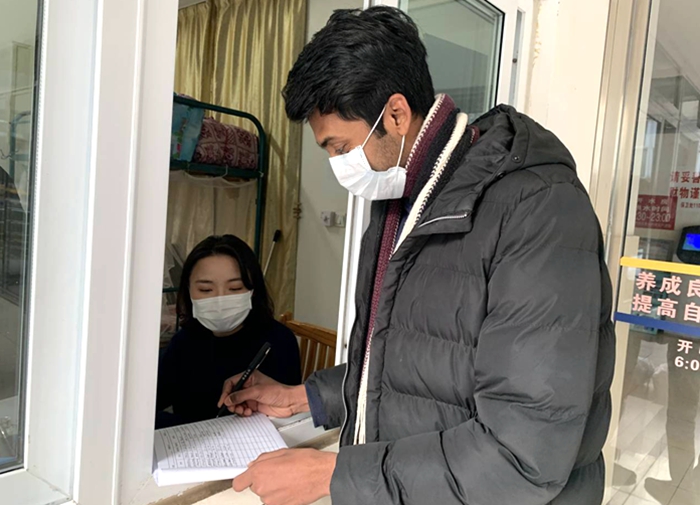 健全工作机制,在细节中夯实责任。围绕“三防三查三加强”和“四紧盯四到位”的具体工作要求,国际教育学院召开了部门工作会议,拟定了疫情防控工作方案,细化工作分工,成立疫情应急工作组、服务保障组、宣传教育组、留学生工作组和外专工作组,建立疫情防控工作网络体系,严格落实工作责任制,将疫情防控工作抓细抓实。建立与省教育厅、市外办联动工作机制,地毯式摸排所有外籍师生的具体信息,制定办公室白班和夜班留学生公寓值勤工作制度、留学生公寓出入登记制度、外出报告制度等,对外专和各类留学生进行分类管理,精准防控。连日来,值班人员坚守疫情防控一线阵地,坚持做好每位留学生的出入登记和跟踪管理,精准把握所有留学生的出入动向,保障在校200余名外籍师生的身体健康安全。