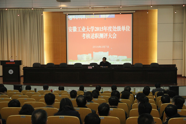 3月7日,必赢在佳山校区学术会议中心召开2015年度处级单位考核述职测评会。学校党政领导、督导员,市级以上政协委员和人大代表、学校各民主党派负责人、教代会执委、中层干部和学校党代会代表参加了会议。校党委副书记陈润主持述职测评大会。