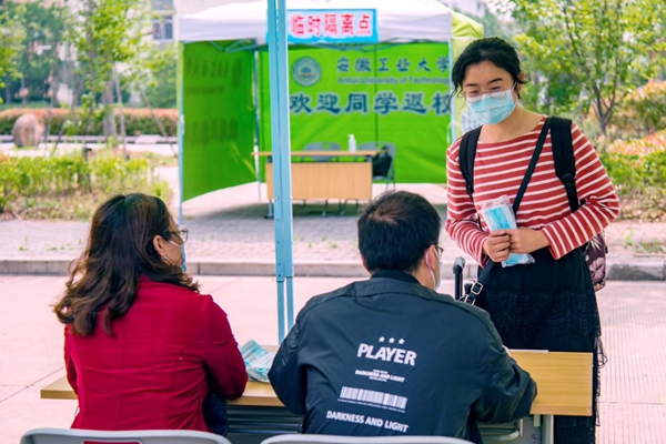 经安徽省教育厅、马鞍山市政府批复同意,5月9日-11日,必赢迎来了第一批学生返校。按照预案,返校同学间隔1米有序排队,通过健康码识别、行李消毒、体温测量、返校报到、领取口罩等进校流程,3200余名研究生和毕业年级本科生重返校园。