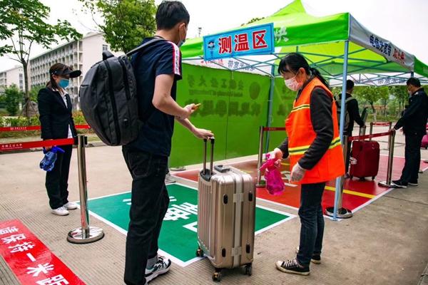 据悉,为保障春季学期学生返校工作的科学有序开展,学校新冠肺炎疫情防控工作领导小组积极开展工作,制定详细周密的方案预案,专门召开了返校工作布置会;各职能部门和各学院密切配合,群策群力,在疫情应急处置、防疫物资储备、公共场所消杀、食宿后勤保障、师生健康监测、教学衔接安排等方面做好了充分准备,共同构筑了学生返校的安全“防护网”,确保了学生返校工作顺利平稳。(撰稿:夏梦醒 摄影:葛洪 黄敏 审核:窦贤琨 杜飞)