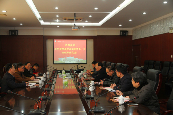 3月10日下午,新华学院王孝武副董事长、校长石秀和一行来必赢进行交流座谈,校党委书记刘新跃,研究生院常务副院长郑明东以及能环学院、计算机学院、管工学院等部门负责同志参加了交流座谈会。