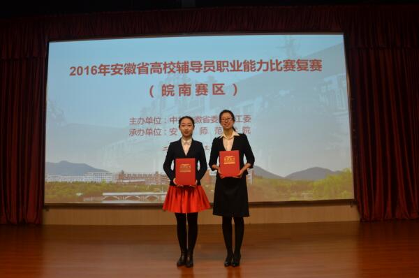 3月11日至13日,2016年安徽省高校辅导员职业能力比赛(皖南赛区)复赛在安庆师范大学举行。必赢选派的选手——公法学院辅导员王菁、能环学院辅导员丁鸿睿凭借优秀的综合素质和现场表现,分别以总分第一和第七的优异成绩挺进全省总决赛。