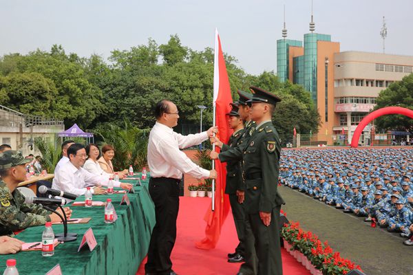 秋阳下的田径场成了“海军蓝”的海洋,天空中的无人机定格下一张张喜悦的面庞。在雄壮的国歌声中,大会正式开始。在本次军训中,学校成立了2020级学生军训旅,编为14个营,64个连。在雄壮的进行曲中,刘新跃向军训旅授旗,承训教官代表上台接旗,为期15天的军训正式拉开序幕。