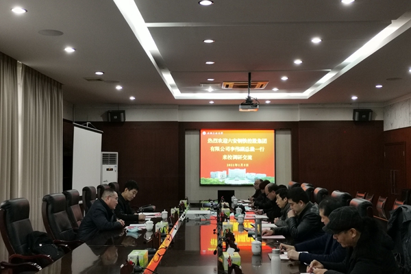 1月5日下午,六安钢铁控股集团有限公司副总裁李伟一行来校开展产学研交流。副校长水恒福出席交流座谈会,党办校办、科研处、冶金工程学院等部门负责人和教师代表参加座谈会。