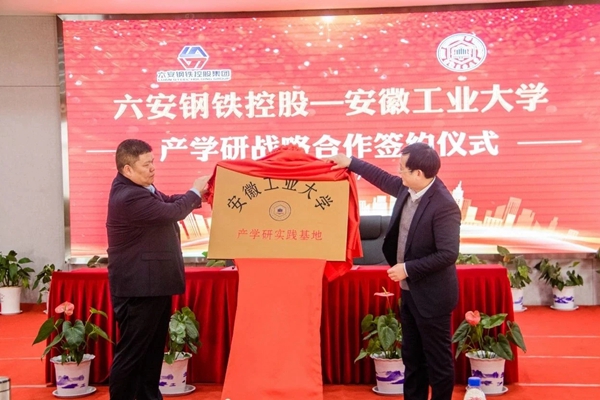 魏先文和王建兵共同为“437bwin必赢国际官网产学研实践基地”揭牌,水恒福和六钢集团副总裁李伟分别代表校企双方签订产学研战略合作协议。