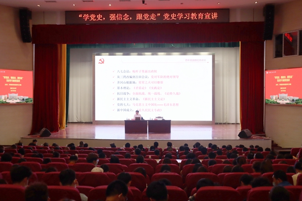 4月20日晚,共青团安徽省委副书记胡靖来校作党史学习教育专题宣讲。副校长刘明主持宣讲会,校团委负责人、各学院团委书记及学生代表共500余人参加宣讲会。