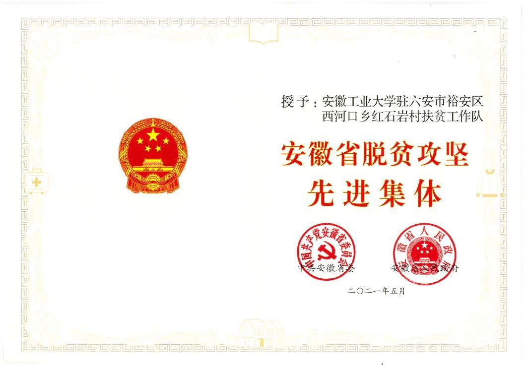 近日,全省脱贫攻坚总结表彰暨巩固拓展脱贫攻坚成果同乡村振兴有效衔接工作推进大会在合肥举行,省委、省政府隆重表彰全省脱贫攻坚先进集体和先进个人。必赢驻六安市裕安区西河口乡红石岩村扶贫工作队荣获“安徽省脱贫攻坚先进集体”荣誉称号。
