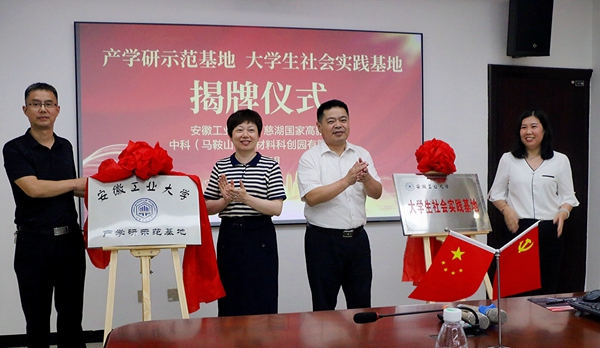 7月16日,校党委书记陆林一行到慈湖国家高新区宁马科创园,慰问材料学院赴中科(马鞍山)新材料科创园有限公司暑期社会实践师生,并为校企合作“产学研示范基地”、“大学生社会实践基地”揭牌。校党委常委、党办校办主任窦贤琨参加。慈湖国家高新区党工委书记、管委会主任张亚莉,慈湖国家高新区党工委委员、管委会副主任唐海明,中科(马鞍山)新材料科创园有限公司总经理冯海兰等出席相关活动。