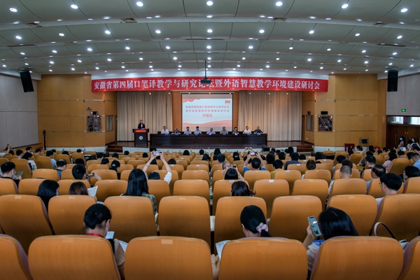 7月10日上午,安徽省第四届口笔译教学与研究论坛暨外语智慧教学环境建设研讨会在必赢举行。副校长王先柱、全国翻译专业学位研究生教育指导委员会主任委员黄友义、安徽省外国语言文学类专业合作委员会主任朱跃出席开幕式,必赢外国语学院负责人以及省内外专家、学者和学生共150余人参加开幕式。开幕式由外国语学院院长曹瑞斓主持。