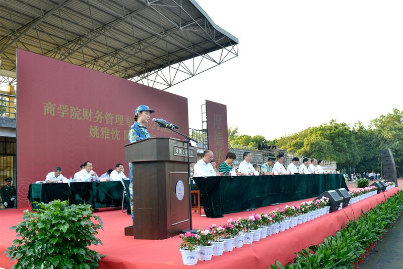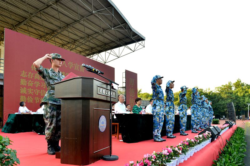 在雄壮的国歌声中,大会正式开始。魏先文在题为《德智体美劳全面发展,五育并举育时代新人》的致辞中,向广大新同学的到来表示欢迎,向辛勤培育同学们成长的父母、师长表示敬意,向各位承训教官表示感谢。他简要介绍了学校基本情况和本届新生、在校生情况,并向同学们提出了五点希望。一是希望同学们明大德、担大任,争做厚德敏行的有为者,做到以修身为先,慎独、慎初、慎微、慎欲,诚实做事、诚信做人、潜心学问,始终坚持爱国、爱党和爱社会主义相统一,立志听党话、跟党走,将自己的理想同祖国的前途、自己的人生与民族的命运紧密联系在一起,立志肩负起民族复兴的时代重任。二是希望同学们长智慧、成大才,争做精工博学的奋进者,树立终身学习理念,把学习当作精神追求、生活习惯和社会责任,养成善于学习、勤于思考的习惯,实现学以养德、学以增智、学以致用。三是希望同学们常锻炼、增体质,争做身心健康的搏击者,走下网络、走出宿舍、走向操场,做到“每天锻炼一小时,健康工作五十年,幸福生活一辈子”。四是希望同学们发现美、践行美,争做品位高雅的创造者,积极参与到学校各类校园文化活动中,努力提高自身艺术修养,用美来陶冶心灵,焕发高尚的道德情操,真正成为一个高尚的、丰盈的、全面发展的人,让人生得到诗意的绽放。五是希望同学们爱劳动、乐生活,争做自强不息的实践者,在学习和生活中上好劳动教育这门必修课,勇于探索,敢于创新,追求卓越。