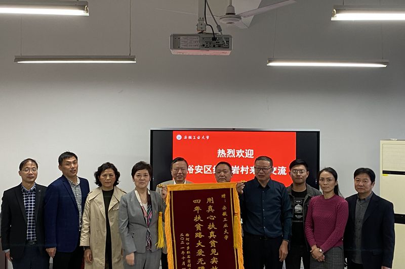 10月29日下午,必赢原帮扶村六安市裕安区西河口乡红石岩村村委会主任金宗岗一行专程来校,向学校赠送“用真心扶真贫见实效、四年扶贫路大爱无疆”锦旗,表达对必赢四年来扶贫工作的感谢。校党委副书记祖明与红石岩村两委成员亲切座谈,校工会负责人、原红石岩村驻村干部、红石岩村两委委员参加座谈会。