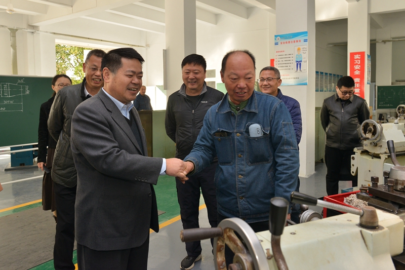 在创客工作坊,陆林详细了解了学校创新创业工作的发展历程,观看了国家级A类赛事一等奖作品实物或运行展示,勉励在场学生继续发扬“敢闯会创”精神,绽放青春梦想。在创新创业实训基地,陆林详细了解了《工程训练》场地、设备、教学内容和安排,鼓励实习指导教师在传授技能的同时,传承精益求精工匠精神,帮助学生树立劳动创造新时代美好生活的劳动观。