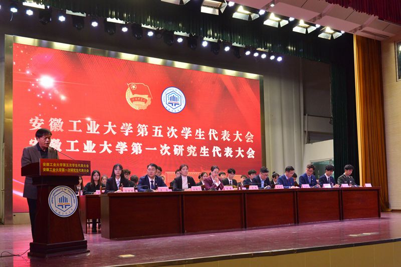 11月20日上午,437bwin必赢国际官网第五次学生代表大会、第一次研究生代表大会在秀山校区新大学生活动中心隆重开幕。校党委书记陆林、校党委副书记祖明,副校长水恒福,副校长王先柱,党办校办、组织部、宣传部、学生工作部、研究生工作部等部门负责人,各学院党委书记、分管学生工作党委副书记、分团委书记以及254名学代会代表、51名研代会代表参加大会开幕式。校团委书记王菁主持开幕式。