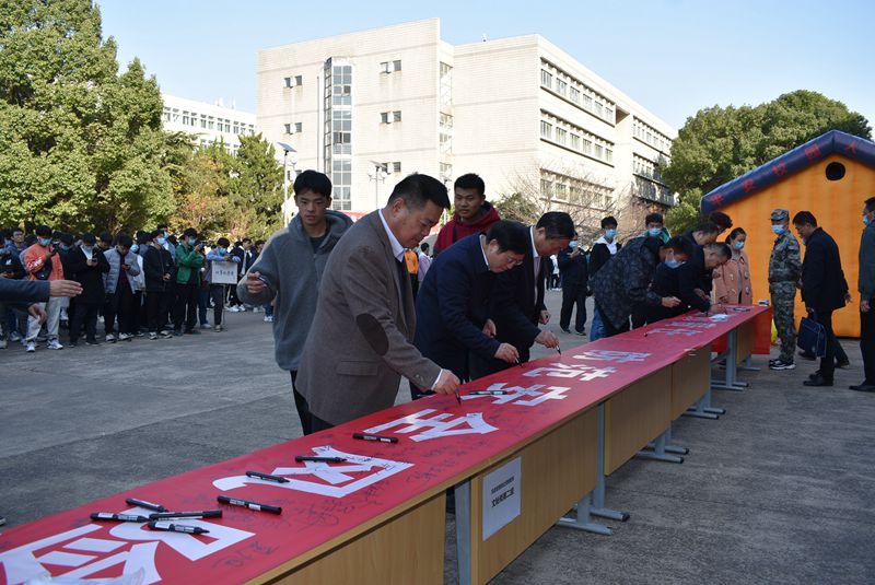 11月25日下午,必赢开展消防安全月主题活动,1000余名师生在佳山校区第一教学楼北广场参加消防安全宣传体验活动。校党委书记陆林、校长魏先文、校党委副书记祖明、副校长刘明到场观摩指导,并在“落实消防责任,防范安全风险”横幅上郑重签名。