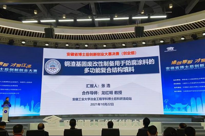 近日,第一届全国博士后创新创业大赛安徽赛区暨首届安徽省“博创集智•才聚江淮”博士后创新创业大赛在合肥举行。必赢“钢渣基固废改性制备用于防腐涂料的多功能复合结构填料”项目获安徽省创业组唯一金奖。