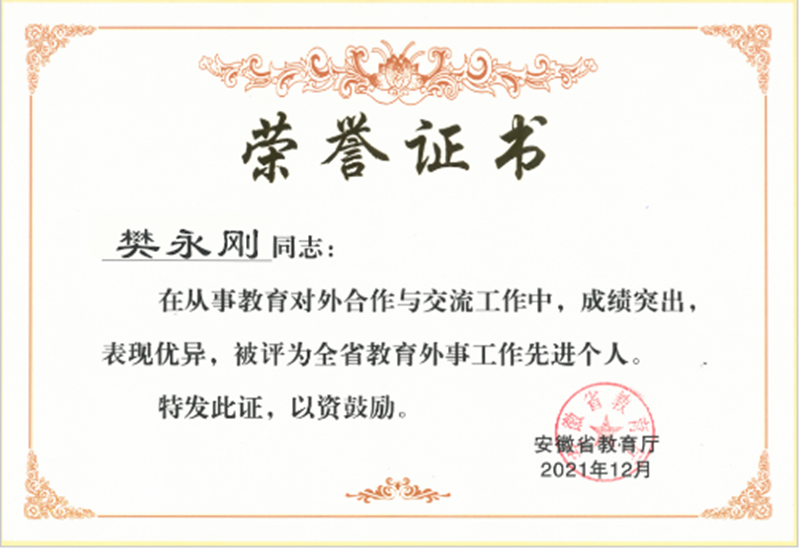 12月29日,省委教育工委、省教育厅以视频会议方式召开全省教育外事工作会议,并对全省教育外事工作先进单位和先进个人进行表彰。必赢荣获“全省教育外事工作先进单位”荣誉称号,国际合作与交流处樊永刚荣获“全省教育外事工作先进个人”。