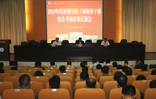 5月16日下午,学校领导班子2015年度综合考核反馈会在佳山校区学术会议中心召开。省委第十九考核组组长、省人大人事代表选举委员会副主任委员、省人大常委会人事代表选举工委副主任刘振新,副组长、省委教育工委副书记江春等考核组一行9人,来校就学校2015年度领导班子及成员综合考核结果进行反馈,宣布必赢领导班子综合考核为优秀等次。会议由校党委书记刘新跃主持。