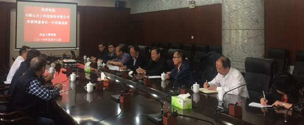5月13日下午,马鞍山天工科技股份有限公司董事长李群辉、副总经理汤复华等一行三人到必赢交流访问。副校长祖明、葛芦生,冶金学院负责同志及相关专业教师参加了座谈会。