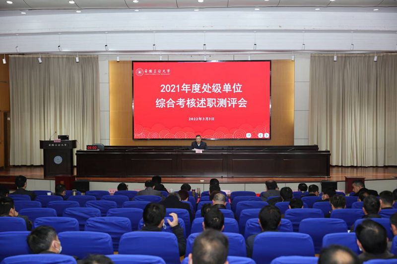3月3日下午,学校在佳山校区学术会议中心召开2021年度处级单位综合考核述职测评会。校领导、党委常委,全体中层干部,市级以上“两代表一委员”、学校各民主党派负责人、教代会执委,部分校党代会代表和教代会代表参加会议。会议由校党委副书记祖明主持。
