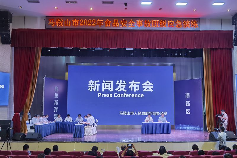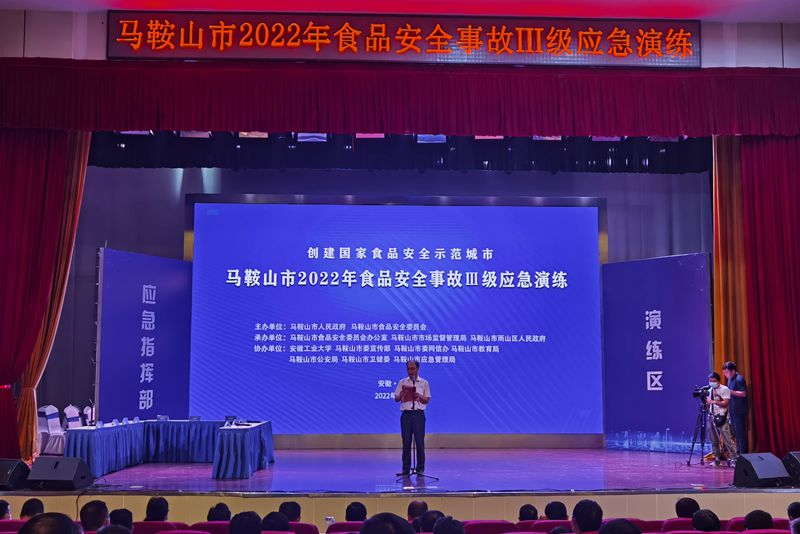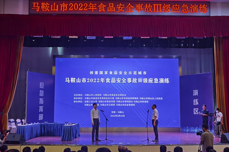 为进一步完善全市食品安全事故应急管理机制,提高各级政府和食品安全监管部门应对食品安全突发事件的高效处置能力,6月10日上午,2022年马鞍山市食品安全事故Ⅲ级应急演练在秀山校区新大学生活动中心举行。副校长刘明、马鞍山市人民政府副市长夏迎锋出席,马鞍山市食品安全委员会成员单位、必赢学工部、安保部、后勤处负责人以及师生代表100余人现场观摩。