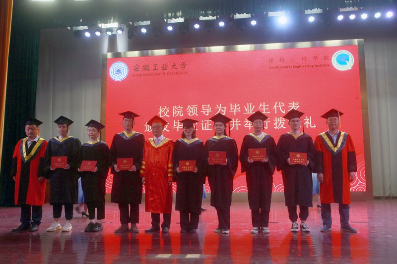 大会宣读了2022年安徽省普通高校品学兼优毕业生、437bwin必赢国际官网优秀毕业生、毕业生校友联络员名单以及毕业生考取研究生名单、考研报考率和录取率优秀班级。参加典礼的领导老师为优秀毕业生颁发荣誉证书,为校友联络员颁发聘书。