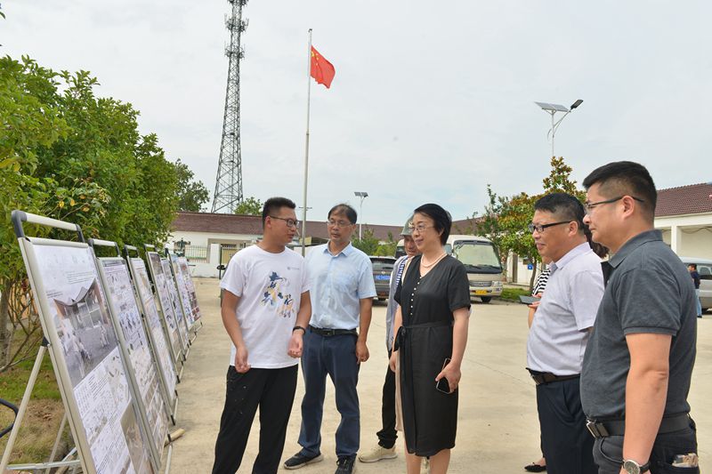 顾明言先后来到兴圩村党群服务中心和红光村乡村大舞台,被实践队员们绘制的一幅幅以“乡村振兴”为主题的精美墙绘和设计规划图所吸引,饶有兴趣地与队员们交流起社会实践过程与感受,鼓励大家深入乡村了解乡情,创作更多优秀艺术设计作品,为繁荣乡村文化、振兴乡村多作贡献。
