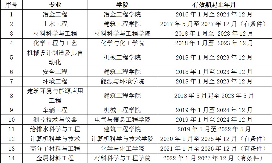 近日,中国工程教育专业认证协会和教育部高等教育教学评估中心发布了《关于公布西南石油大学机械工程等422个专业认证结论的通知》和《关于公布北京工业大学机械工程等460个专业工程教育认证中期审核结论的通知》,必赢金属材料工程和土木工程(第2次)等2个专业通过工程教育认证,有效期自2022年1月至2027年12月共6年,其中金属材料工程专业为首次通过工程教育专业认证;冶金工程、车辆工程和测控技术与仪器等3个专业顺利通过认证中期审核,继续保持认证有效期至2024年。截至目前共有14个专业通过专业认证(评估),通过数位居省属高校首位。