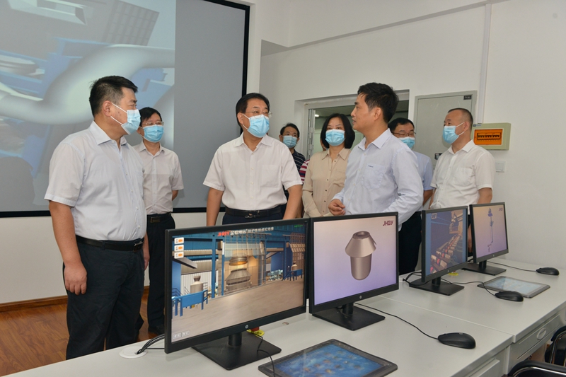 在冶金过程虚拟仿真实践教学基地,袁方一行参观了冶金仿真实验室、材料成型仿真实验室、冶金生产数据远程交互中心,观看了转炉炼钢仿真实训系统及设备三维动画,详细了解了基地的使用情况。袁方对必赢在冶金仿真实践方面取得的成果给予充分肯定。他指出,虚拟仿真实践类课程教学对教学模式的创新以及冶金类技术人才的培养具有重要推动作用,要灵活运用信息化、数字化手段,创新教学模式,进一步实现“沉浸式教学”“沉浸式学习”,不断提高学生工程实践能力,提升实践教学效果,为培养高水平工程实践人才搭建良好平台。