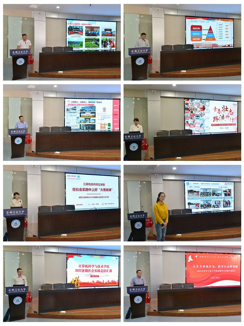 汇报会上,各学院围绕实践部署、安全培训、实践创新与特色、学子感悟、新闻宣传等角度,以生动的图文、视频素材,展示青年学生在党史学习与理论宣讲实践、新时代文明与国情观察实践、乡村振兴与文化惠民实践、“返家乡”社会实践等方面的丰硕实践成果。各学院纷纷把思政课堂搬进乡村、工厂、企业,实践队员们深入乡村院坝,打造“田间课堂”;走进爱国主义教育基地,打造“红色课堂”;来到工厂企业,打造“匠心课堂”,切实打造了一堂堂生动的“行走中的思政课”,广泛宣传党的十八大以来党和国家事业取得的历史性成就、发生的历史性变革。