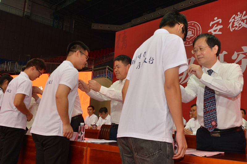 典礼上,导师代表郑近德、校友代表王常春、在校生代表郑伟成和新生代表恽郑曦先后发言。全体在校党政领导为研究生新生代表佩戴校徽,全体同学将校徽佩戴在胸前,恽郑曦带领全体研究生新生作诚信宣誓。