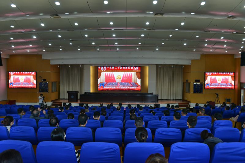 10月16日上午10时,中国共产党第二十次全国代表大会在北京人民大会堂开幕,这是在全党全国各族人民迈上全面建设社会主义现代化国家新征程、向第二个百年奋斗目标进军的关键时刻召开的一次十分重要的大会。学校组织广大党员、干部、师生集中收看党的二十大开幕会的直播盛况,认真聆听习近平同志代表第十九届中央委员会向大会作的报告,结合实际畅谈体会。