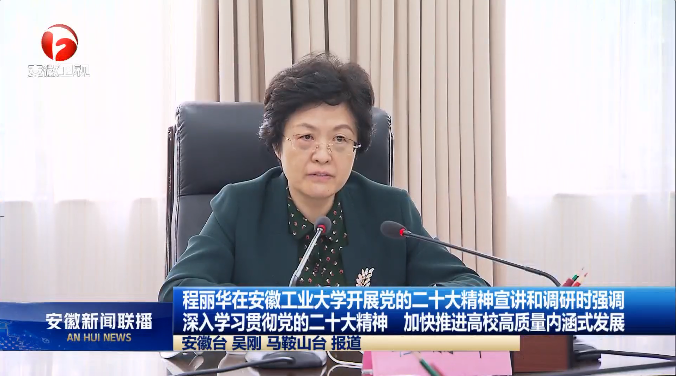 程丽华首先来到学校马克思主义学院,调研了解有关情况,与教职员工进行面对面交流,随后召开座谈会,在听取校班子成员、师生代表发言后,她强调,党的二十大精神主题鲜明、内涵丰富、博大精深,要深入领会大会主题的新内涵,凝心聚力团结奋斗;深入领会伟大变革的新成就,坚决拥护“两个确立”;深入领会理论创新的新成果,自觉用以凝心铸魂;深入领会新征程上的新使命,全力服务中心大局;深入领会自我革命的新要求,坚定全面从严治党;深入领会对青年的新期待,热情贡献青春力量。要深入实施科教兴国战略,坚持为党育人、为国育才,发挥自身优势,强化改革创新,加快推进高质量内涵式发展,为建设现代化美好安徽提供人才和智力支撑。