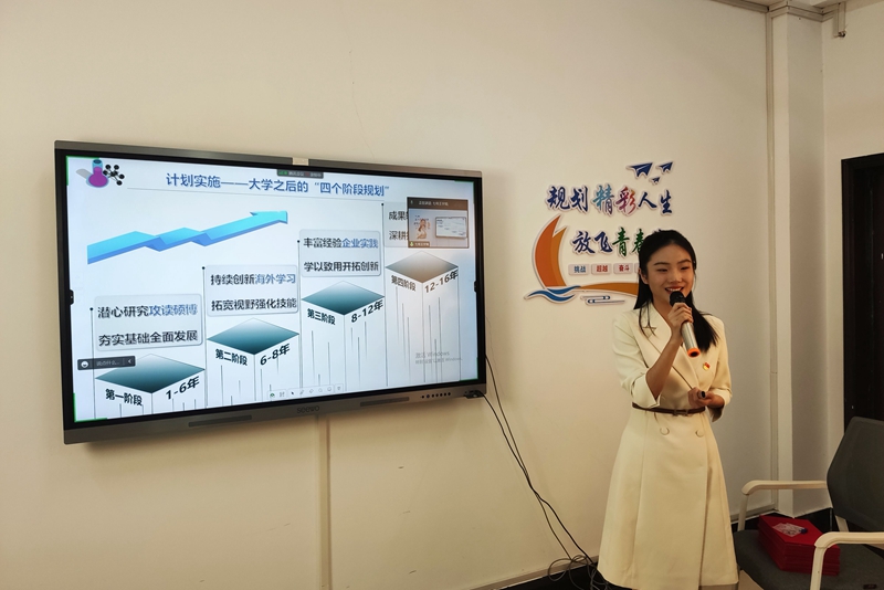 本次大赛以“规划精彩人生,放飞青春梦想”为主题,旨在提高大学生职业规划意识,培养大学生的社会责任感和创新精神,引导更多大学生树立正确的成才观、就业观。大赛历时9个月,全省100余所高校近3万名学生参赛,经过校赛选拔、片区半决赛角逐,最终23名本科组选手进入总决赛。总决赛通过线上形式进行,比赛内容分为生涯规划设计陈述、职业模拟情景视频展示和现场答辩等三个环节。王宇琦结合自身实际、行业前景、所学专业知识,阐释了一名“表界面工程师”的职业目标,展现了必赢学子高水准的职业规划素养、砥砺奋进的精神面貌,汇报内容和答辩展示赢得了评委的充分肯定。