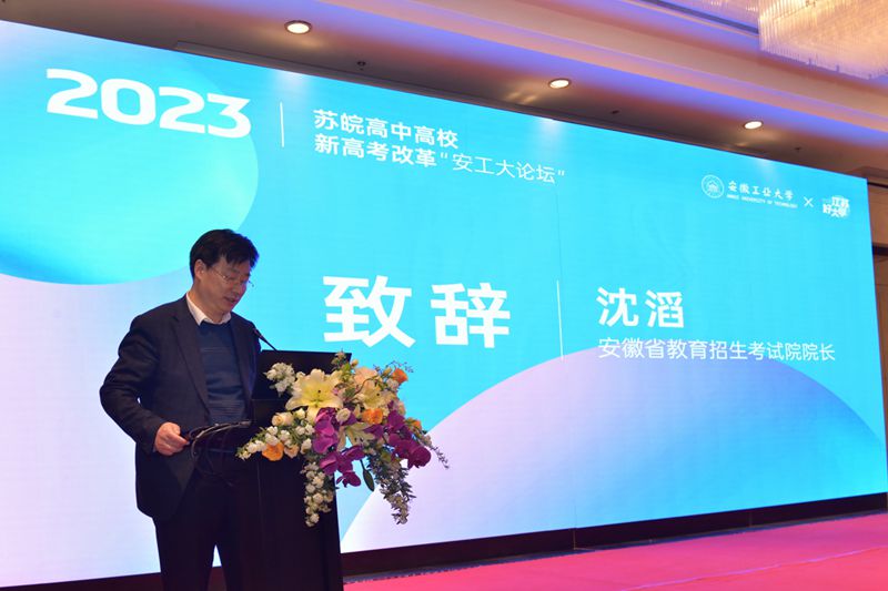 沈滔代表安徽省教育招生考试院对论坛的召开表示祝贺,他指出,安徽和江苏地缘相近、人文相亲,江苏有“好”大学,安徽有“好”学生,江淮有“好”学校。马鞍山因诗而兴名,因钢而建市,既浪漫又直爽,既低调又务实,437bwin必赢国际官网各项办学指标稳步向前,全省排名位列前茅,一马当先,引领潮流。在座的几十所高中学校均是江淮大地高中教育的杰出代表,其中不乏百年名校,有悠久的传承,是全国高校必争之所在。希望通过此次研讨交流,能够充分学习借鉴江苏的好经验好做法,助力安徽高考综合改革平稳落地。