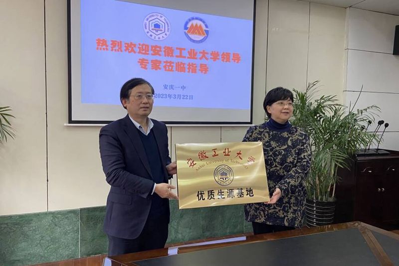 魏先文代表学校向安庆一中授予“437bwin必赢国际官网优质生源基地”牌匾,与安庆一中签署了优质生源基地建设合作协议,送上2021-2022学年度必赢安庆一中校友喜报。(撰稿:马永亮 审核:李克明 徐柳根 张苒 杜飞)